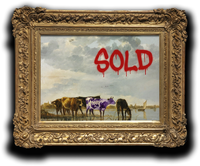 In Tasteful Outcast, Finch responds to Freud’s observation in Civilization and Its Discontents that “no one talks about the purpose of the life of animals, unless it is that they are meant to serve human beings.” By ‘branding’ Cuyp’s cow as a consumer product, Finch positions the animal as a subject rather than a passive object. He invites us to ask: why shouldn’t animals have purpose beyond servitude? The branded cow becomes a metaphor not only for commodification, but also for a quiet resistance to being reduced to abstraction.